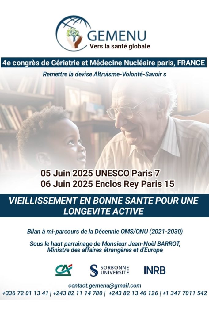 Ce 4ᵉ Congrès GEMENU s’inscrit dans le cadre du bilan à mi-parcours de la Décennie OMS/ONU (2021–2030) pour le Vieillissement en bonne santé.